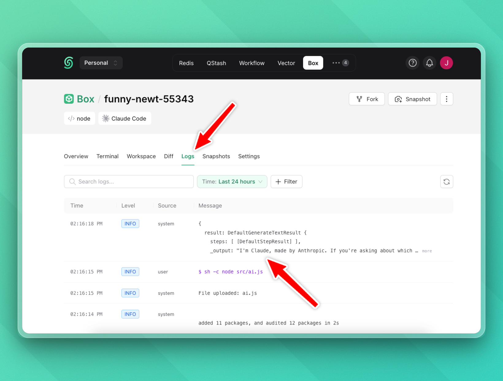 We can confirm our agent is working in the Upstash Box logs: